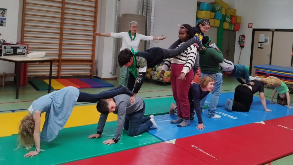 En fin de séance une activité collective permet à tous, à la fois de se détendre ensemble, d’exercer ses capacités et de partager celles-ci avec les autres enfants et adultes présents.